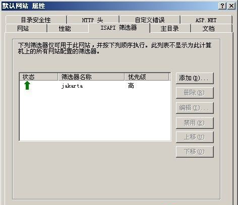 添加筛选器 名称jakarta 文件地址 C:\web\isapi\bin\isapi_redirect.dll