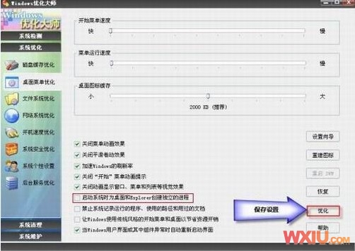 1、如果你用了Windows优化大师,在优化大师中有项叫做“启动系统时为桌面和explorer创建独立的进程“,把它前面的勾去掉就好了。最后“优化”,退出,重启即可。