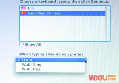 图5 选择键盘局部方式和输入法,在这里我们看到了熟悉的智能ABC(即图中的ITABC)