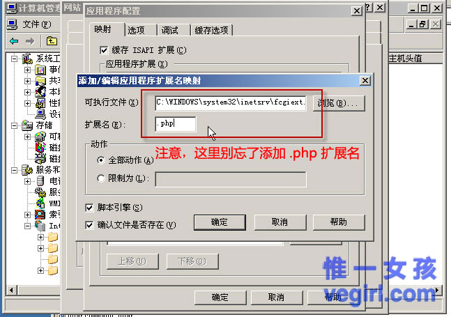 至此,php部分配置完毕。下面 我们来在IIS里添加对php的支持,当然,我们采用的FastCGI方式。