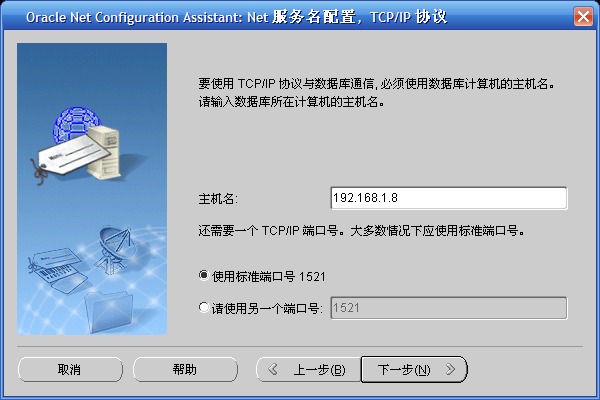 第五,点击下一步,在新的对话框当中输入数据库服务器的IP,并选择正确的端口号,ORACLE实例的默认端口是1521,地球人都知道嘀。如下图所示: