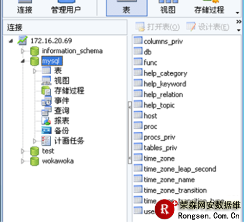 这样左边就可以列出数据库“连接名”的快捷方式,双击以后可以列出这个mysql里面所有的数据库,等同于“show databases”命令。如图172..16.20.69这个: