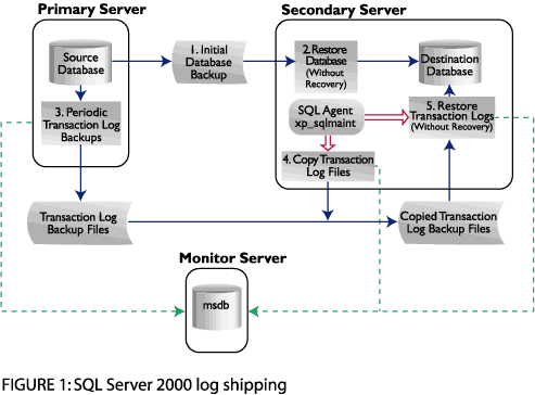 在SQL Server 2000企业版或开发版之中,Microsoft在Enterprise Manager内提供了一项日志传送(Log Shipping)的功能 - 为数据库维护计划精灵的其中一部份。在使用之前的SQL Server时,您需要自行建立日志传送系统。