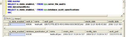 要使服务器审计对象和数据库审计规范可用,我们可以运行下面的代码: